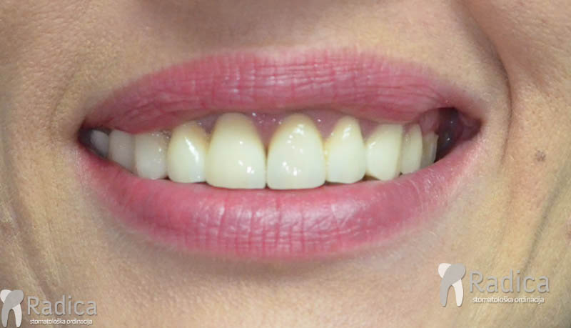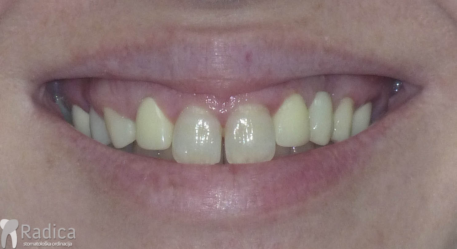 Na sljedećoj slici se mogu vidjeti početak i kraj ortodontske i protetske terapije. Protetske radove radio je dr. Goran Radica.