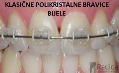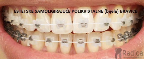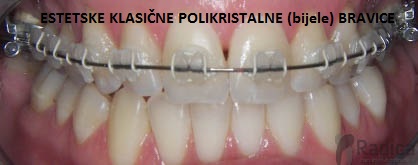 - Keramičke polikristalne – keramičke bijele bravice, mogu biti klasične i samoligirajuće. U ovu skupinu spadaju danas najčešće korištene bravice: QuicKlear Forestadent, Damon, Inovation C…